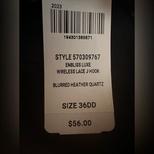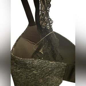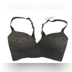 Soma Enbliss Luxe Wireless Bra 36DD Lace J-Hook Padded Cup NWT. Black Grey Heathered fabric