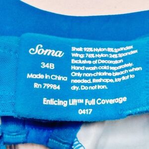 {Soma} "Enticing Lift Unlined Full Coverage Bra" Lace Floral Sexy Feminine