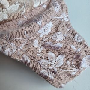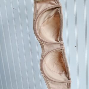 Soma Eva Strapless Bra 34C Satin Unlined Underwire Side Boning Tan Nude Floral