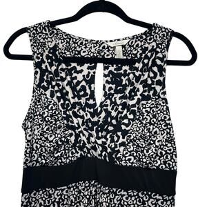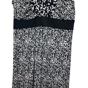 Soma women's black floral & white dress. Sleeveless. Cross over v-neck. Empire waist. Keyhole in back. Stretch. Unlined. Maxi length. Mixed floral print. In good used condition. No stains, tears or holes.