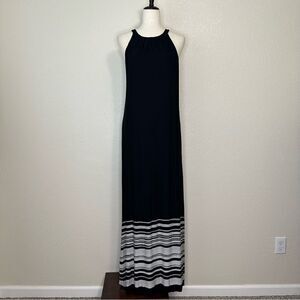 Soma Halter Black Gray Striped Maxi Dress