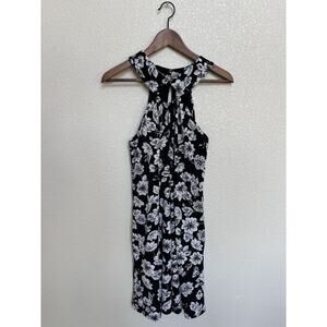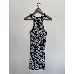 Soma Halter Ring Dress With Built In Bra Black White Floral Medium Vacation