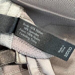 The Soma Intimates Bra 32DDD in taupe lace offers underwire support, adjustable straps, and a comfortable blend of nylon and spandex. Made in China, this bra ensures a perfect fit and all-day comfort.