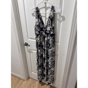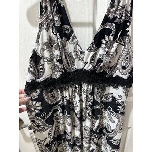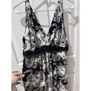 Soma Intimates Long Maxi Nightgown Size Large Sleeveless Paisley Black/White