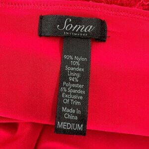 Elevate your wardrobe with this elegant red lace cami from Soma Intimates. The medium fit, combined with the striking lace design and adjustable spaghetti straps, ensures both comfort and style. Ideal for layering or as a stand-alone piece, it enhances any outfit with its vivid color and intricate pattern.
