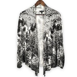 Soma Intimates Open Front Cardigan Knit Sweater Black White Print Size S *STAINS
