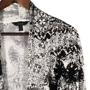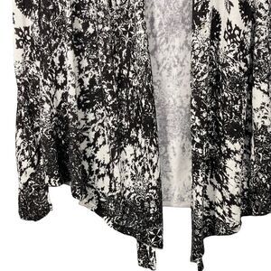 Soma Intimates Light Open Front Cardigan Knit Sweater Black White Print Size S Long Sleeve Stretch *STAINS