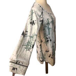 Soma Intimates panda and bamboo button down 3/4 sleeve sleep shirt size L. Panda and bamboo print, 100 percent cotton button down sleep shirt.