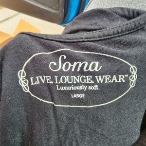 Soma Knit Black Tunic Top Women's Large L Asymmetric Hem 3/4 Sleeve Black EUC