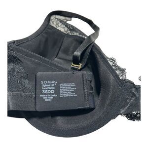 Soma Lightest Lift Lace Plunge Bra Underwire Lined Size 36DD Black