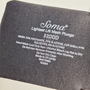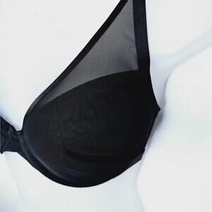 Soma Lightest Lift Mesh Plunge Bra 32DDD / 32F Black Underwire Unpadded