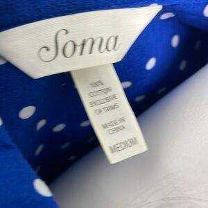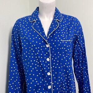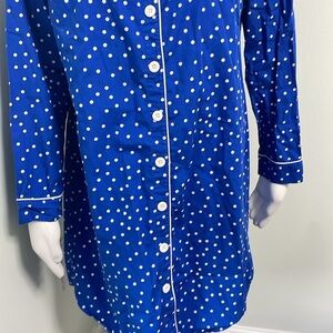 Soma Long Sleeve Blue and White Polkadot Nightshirt medium