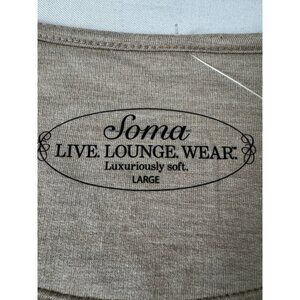 Soma Love Lounge Luxe Soft tunic in a dreamy cowl neck style with delicately embroidered sleeves, perfect for chic comfort and elevated loungewear. Crafted from a luxurious rayon spandex blend that drapes beautifully and feels buttery soft against the skin. Relaxed fit with an easy silhouette, making it versatile for lounging or casual outings. Flat measurements: pit to pit 21", length 32.5". Made in Vietnam. No flaws to note, offering a polished yet cozy vibe for effortless styling.