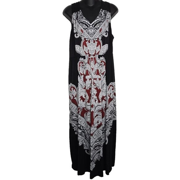 Soma Maxi Dress Size XL Black Printed Cutout W/Pockets Summer Vacation Party