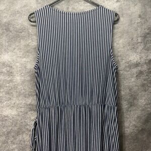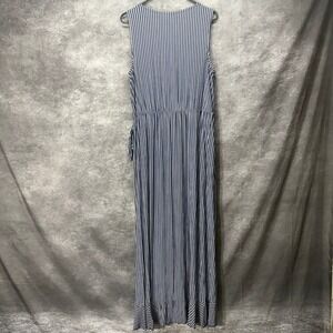 Keywords: Soma dress, maxi dress, striped dress, blue and white dress, sleeveless dress, wrap dress, tie waist dress, casual dress, summer dress, XL dress, women's dress, ruffled hem, v-neck dress