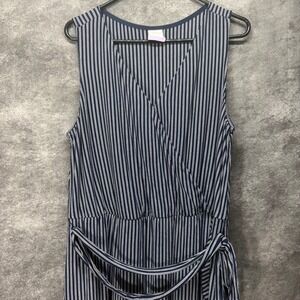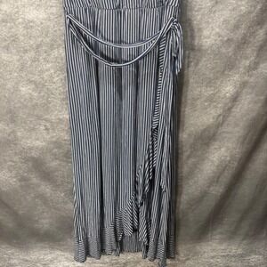 Soma Maxi Dress Size XL Navy White Striped Surplice Wrap Belted Ruffle Nautical