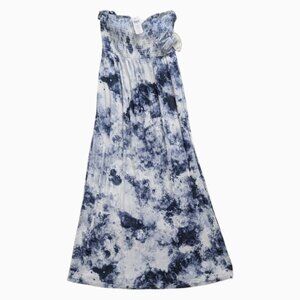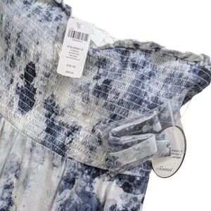 Soma NWT XS Soft Jersey Knit Rayon Maxi Dress Built in Bra Batik Denim Blue. Convertible strapless or straps.