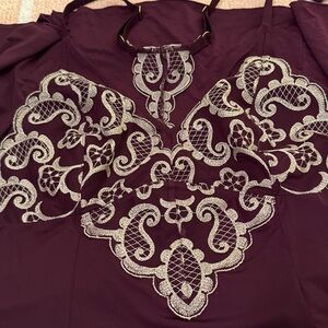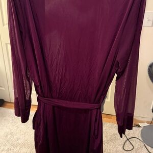 Stunning rich eggplant neglige with gold lace detailing and matching robe
