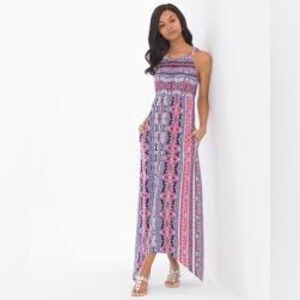 Soma Paisley Asymmetrical Maxi Dress Womens High Neck Sleeveless Jersey Knit. Size medium.