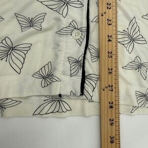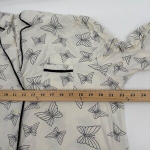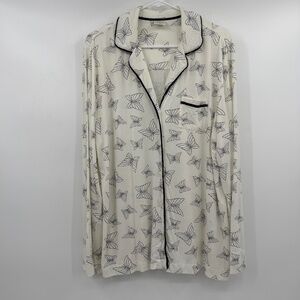 Style: Soma Pajama Top Women XL Ivory Button Up Long Sleeve Butterflies Comfy Cozy