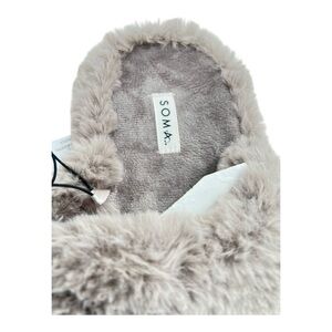Soma Plush Taupe Faux Fur Cozy Mule Slide Slippers Size Large NWT