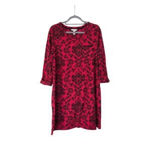 Soma Red Black Paisley Print Cotton Modal Stretch Sleepshirt Pajamas, Size Large