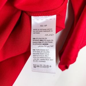 Red 3/4 sleeve top with metal bar keyhole detail and bell sleeves.