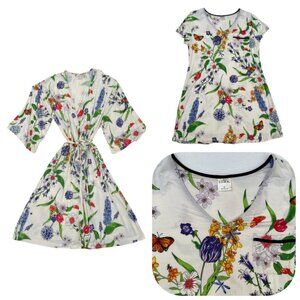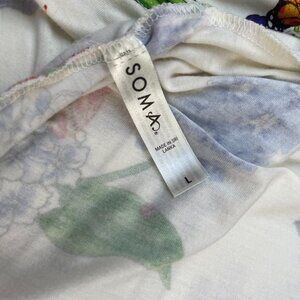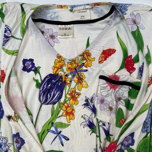 O! So soft and cozy! $125 Soma Robe and Nightgown 2 piece Jersey Knit Floral set. Short Sleeve Floral Jersey Knit Nightgown size L chest 22" length 37" has a chest pocket. Robe: size S/M- chest 22" length 44" kimono 3/4 Sleeve, 2 pockets, v neck. Belt tie closure . Excellent condition.