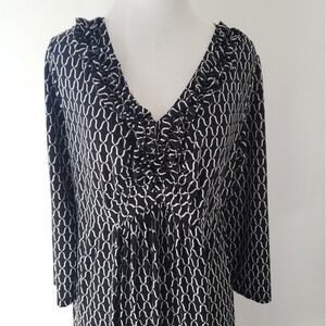 Soma Ruffle-Neck Black White Dress High Waist V-Neck Stretchy Women Small