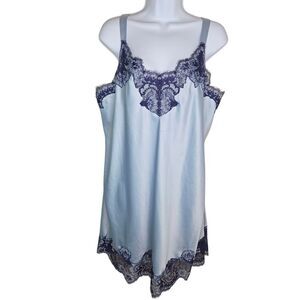 Excellent like new condition. No flaws to note. Women's Soma Satin & Lace Celestial Blue Chemise Nightgown Size XL.