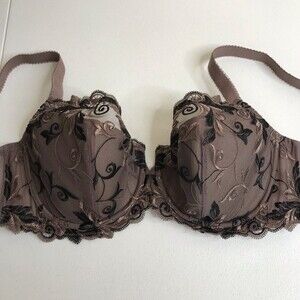 Soma Sensuous Lace Balconet Lined Underwire Bra Taupe Black Womens Size 34DDD