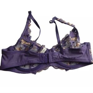 Item: Women's Purple Gold Sheer Embroidered Sensuous Lace Unlined Sheer Bra