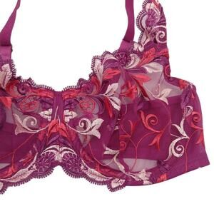 Soma Sensuous Lace Unlined Demi Bra Size 34C New Sheer Purple Embroidered