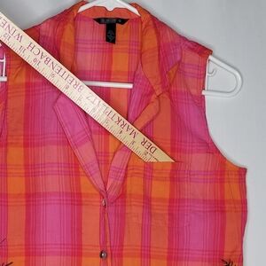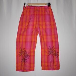 Soma Set Capri Sleeveless Plaid 0 Women Pink Orange Embroidered Tropical Cotton Lightweight