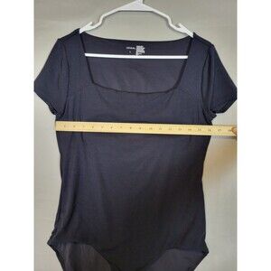 Soma Short Sleeve Square Neck Bodysuit Womens Large Black Ribbed Stretch Soft