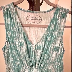 Soma Sleeveless Top V Neck Empire Waist Size Medium Teal Green EUC