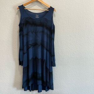 Soma Soft Jersey Cold Shoulder Short Dress in Agile Lines Ink Blue Size Medium