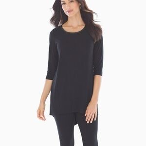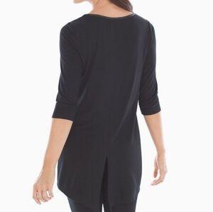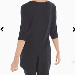 Soma Split Back Soft Jersey Tunic - Black w/ Faux Leather Trim LARGE