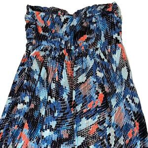 Soma Strapless Blue/PInk Tropicalcore Beach Abstract Print Swim Cover Up/Dress M