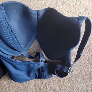 The Stunning Support Balconet is an underwire full coverage balconette style bra with molded cups. fully lined and the lace front detail doesn't create wrinkles or show through. more fun than basic black, theses two bras come in a rich teal and deep purple colors with lacy design. Both bras are size 38G and have been gently worn and hand washed and dried. they are both in excellent shape and have lots of life left.