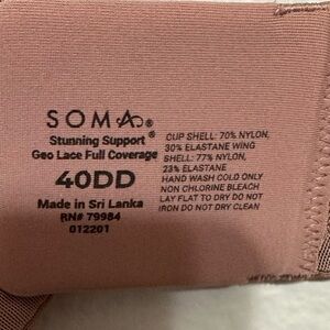 Soma Stunning Support Bra Geo Lace Full Coverage Mauve Pink Underwire Size 40DD