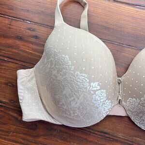 Soma Stunning Support No Show Minimizer Lace detail underwire nude bra sz 44DD