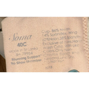 Soma Stunning Support No Show Minimizer Underwire Lace Detail Bra Sz 40C