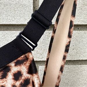 Soma Stunning Support Smooth Full Coverage bra in the Divine Leopard Mini Nude print. Designed to lift and shape with Soma’s patented C-shaped underwire and 3-zone support system, this bra features smooth satin fabric that disappears under clothing, full-coverage cups, adjustable padded elastic straps, and a padded hook-and-eye back closure. Supportive yet comfortable with a sleek silhouette and bold leopard print. Size 40DD. Excellent used condition.