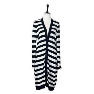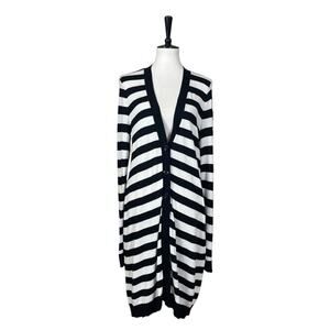 Soma Sweater Long Cardigan Button Front V-neck Black White Stripes Women’s Large