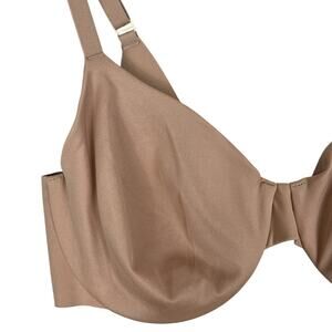 Underwire with perfect coverage cups, ultra thin padding for disappearing neck. 4-way stretch fabric, back smoothing technology. Flat hooks at hook-and-eye closure. Elastic straps that adjust in front. Warm Amber brown. 79% nylon, 21% spandex. Size 36C