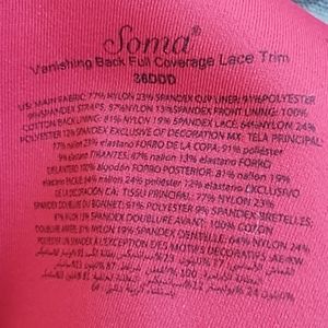 Soma Vanishing Back Full Coverage Lace Trim Underwire Bra 36DDD