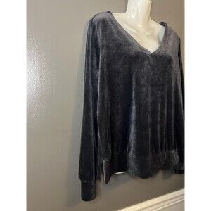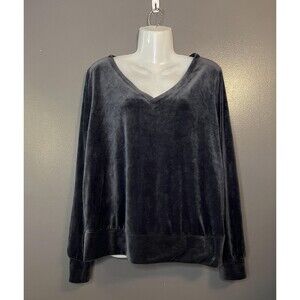 Soma WKND Pullover Womens Large Gray Velour V Neck Lounge Sweatshirt Top Soft