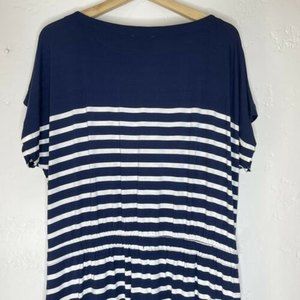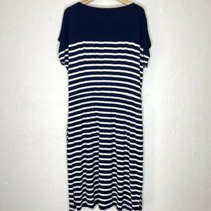 Soma WKND women's large navy blue white striped shirt sleeve maxi dress