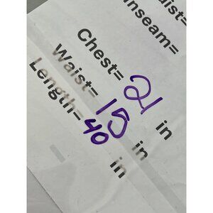Chest = 21 in, Waist = 15 in, Length = 40 in
